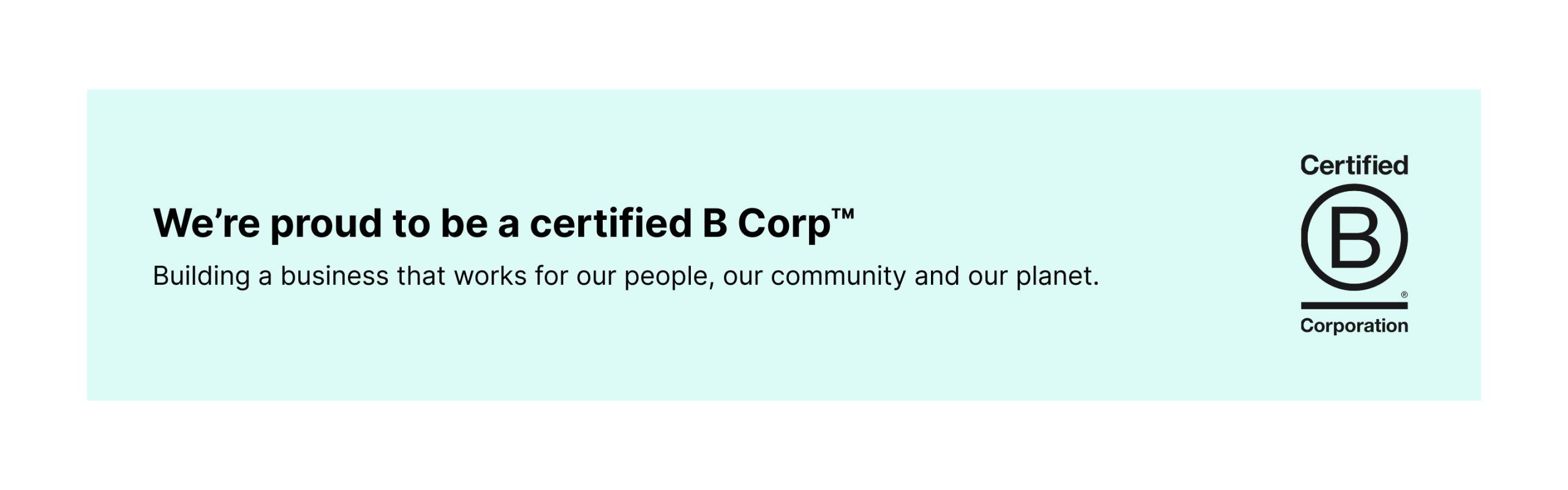 Celebrating B Corp month - we're excited to continue building a business that cares for our team, our community and the planet.